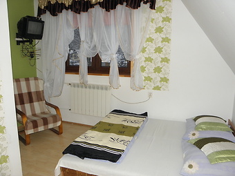 Dla gości przygotowaliśmy pokoje 2 – 4 osobowe, urządzone w nowoczesny, estetyczny sposób. Inspirowane stylem góralskim, urządzone w drewnie z łazienką, telewizją, balkonem i bezprzewodowym Internetem. Cały teren jest ogrodzony. Na naszym terenie znajduje się plac zabaw dla dzieci z basenem o wymiarach 3 x 2m, huśtawką, zjeżdżalnią i piaskownicą oraz zamykany parking.
